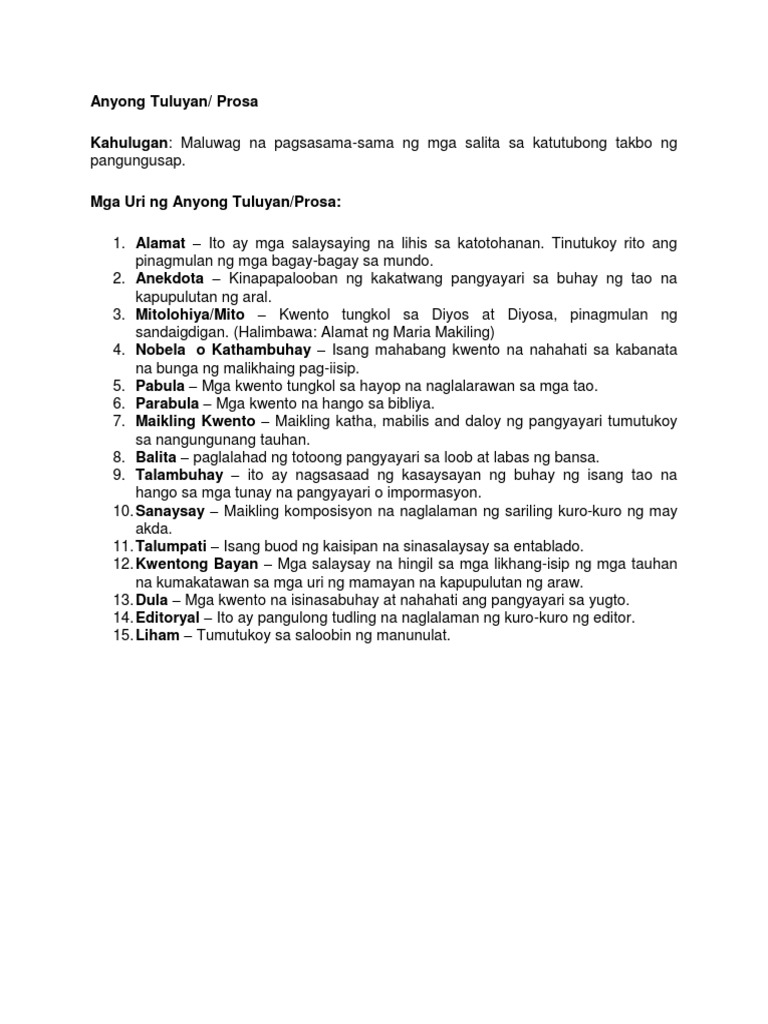 Isang uri ng panitikan na nasa anyong tuluyan. We identified it from reliable source. Sa ikalawang talata naman ay ang wika ay.