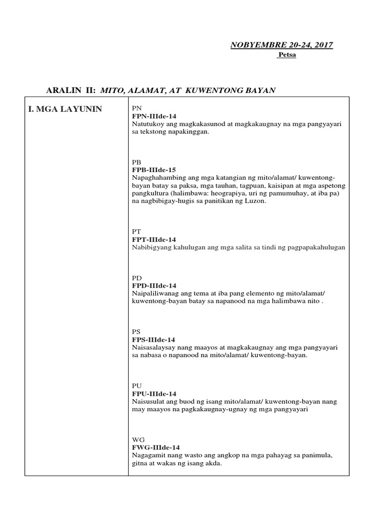 Lp 3rdgrading Mitokwentong Bayan At Alamat Pdf